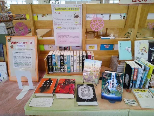 ミニテーマ展示「第60回 吉川英治文学賞」のご案内 公開済み: 2026年3月15日更新: 2026年3月15日作成者: 綾てるは図書館カテゴリー: お知らせ 展示期間:3月8日(日)~3月下旬(予定) 場 所:ミニテーマ展示コーナー 3月5日(木)、「第60回 吉川英治文学賞」が発表されました。 受賞作品 『どら蔵』 朝井 まかて/著 発表に合わせて、所蔵している歴代の 「吉川英治文学賞」受賞作品を展示しております。 この機会にぜひ手に取ってみてください。 Digital Camera