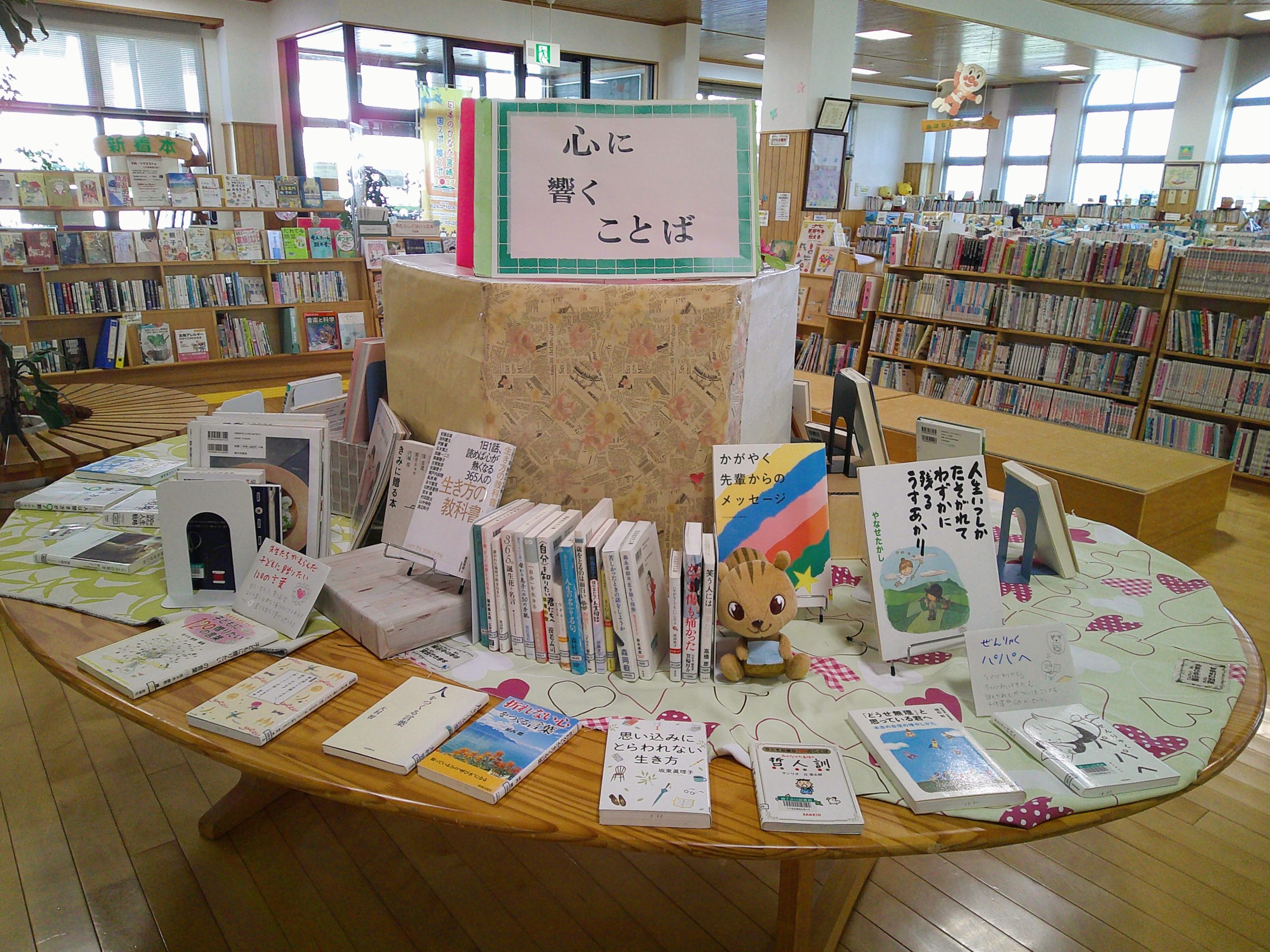 3月テーマ展示「心に響くことば/新生活に向けて」のご案内 公開済み: 2026年3月6日更新: 2026年3月6日作成者: 綾てるは図書館カテゴリー: お知らせ 展示期間:3月3日(火)~3月29日(日) 場 所:テーマ展示コーナー(中央フロア) 「心に響くことば」 偉人や著名人の名言、悩みに寄り添うことばが 載っている本を集めました。 「新生活に向けて」 それぞれ新しい生活に向けて役立つ本や、 挑戦してみたくなる本を集めました。 Digital Camera Digital Camera